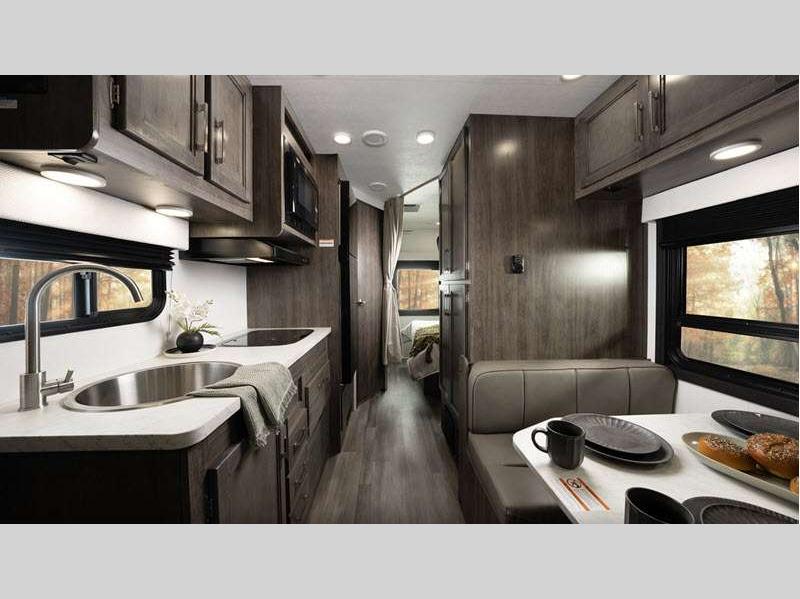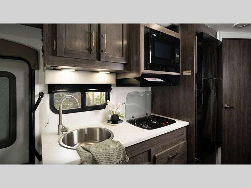 This entry-level Class C coach is perfect for all your travel and camping needs. The heating pads on the holding tanks help maintain functionality in colder weather, making late season camping more comfortable and worry-free, and the 4,000W generator will keep you powered up. There is also a durable Tufflex PVC laminated roof and Stronghold VBL roof, floor, and sidewall construction. Inside, you'll enjoy pleated blackout shades, high-intensity, recessed LED ceiling lights, an 84" ceiling height, and many more comforts.