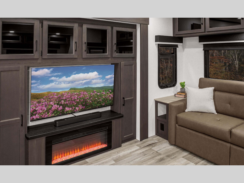 Sleeps 6 Slides 2 Length 36 ft 5 in Ext Width 8 ft Ext Height 13 ft 4 in Interior Color Blake, Doe Hitch Weight 2630 lbs GVWR 13995 lbs Dry Weight 10120 lbs Cargo Capacity 3875 lbs Fresh Water Capacity 76 gals Grey Water Capacity 50 gals Black Water Capacity 50 gals Tire Size 16" Furnace BTU 30000 btu Available Beds King Refrigerator Type 12V Double Door Cooktop Burners 3 Shower Size 48" Number of Awnings 2 Axle Weight 7490 lbs LP Tank Capacity 30 lbs Water Heater Type On Demand Tankless AC BTU 28500 btu TV Info LR 55" LED Smart TV, Awning Info 18' Electric with LED Lights Axle Count 2 Washer/Dryer Available Yes Number of LP Tanks 2 Shower Type Shower w/Seat Electrical Service 50 amp Similar Floorplans