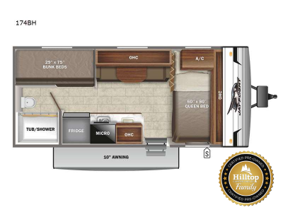 Hilltop Camper & RV is not responsible for any misprints, typos, or errors found in our website pages. Any price listed excludes sales tax, registration tags, and delivery fees. Manufacturer pictures, specifications, virtual tours, and features may be used in place of actual units on our lot. Please click here to contact us for availability as our inventory changes rapidly. All calculated payments are an estimate only and do not constitute a commitment that financing or a specific interest rate or term is available. Monthly payments based on 8.99% interest rate and a down payment of 10% not including tax, title, and license.